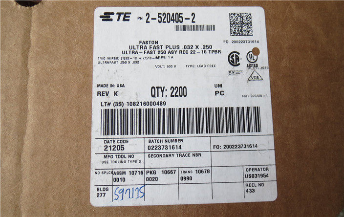 Model: 2-520405-2 American TE Tyco insulated terminal block 6.3MM spring plug connector in stock