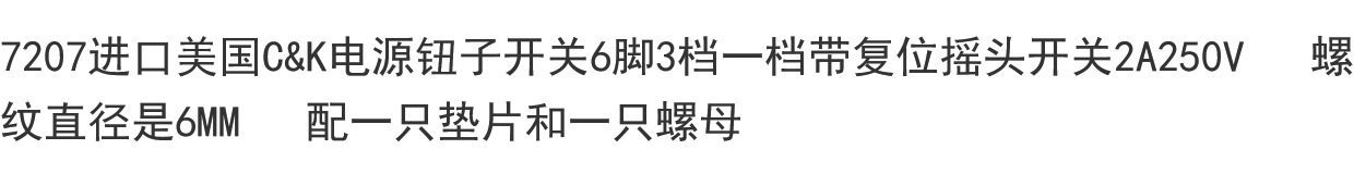Model: 7207 C&K Power Toggle Switch 6-Pin 3-Position 1 Position with Momentary Reset 2A 250V