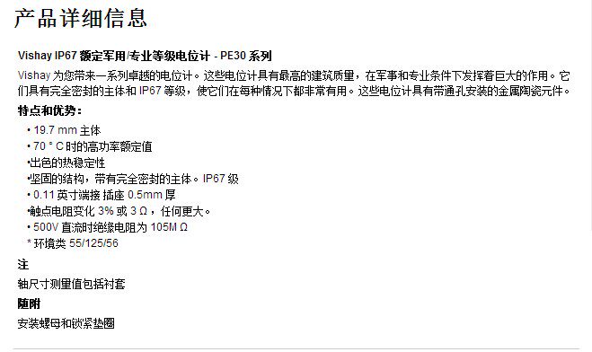Model: VISHAY American PE30 10K long-life single-turn ceramic potentiometer 10% 3W handle length 25MM round shaft