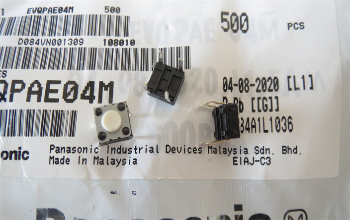 Model: EVQPAE04M Panasonic Japan High Temperature Resistant 4-Pin Through Hole 6*6*4.3mm Tact Switch