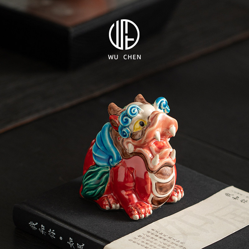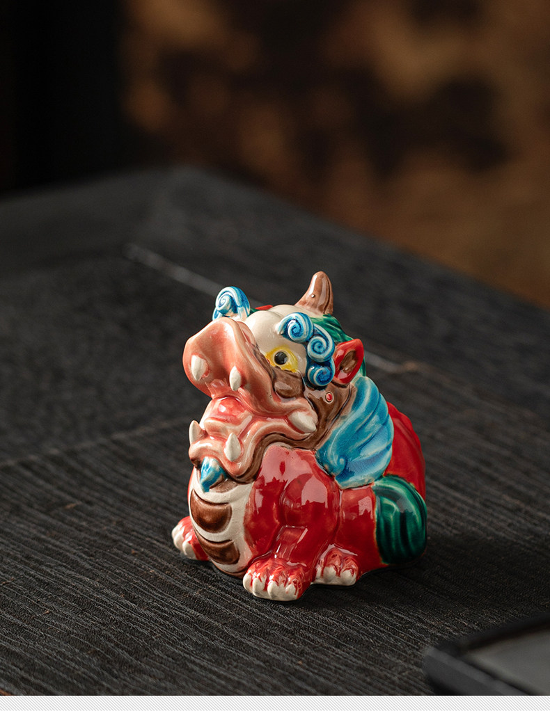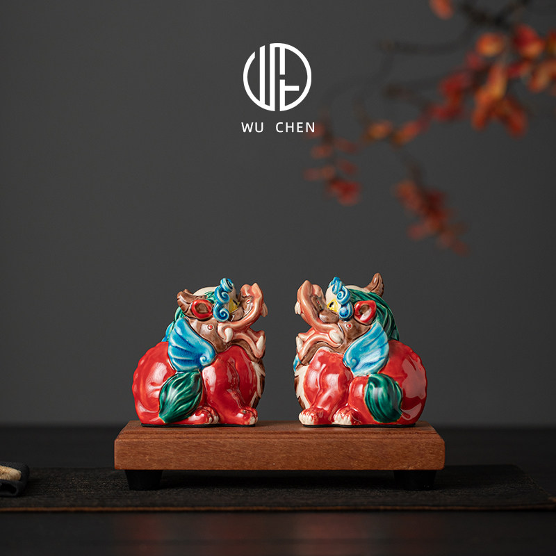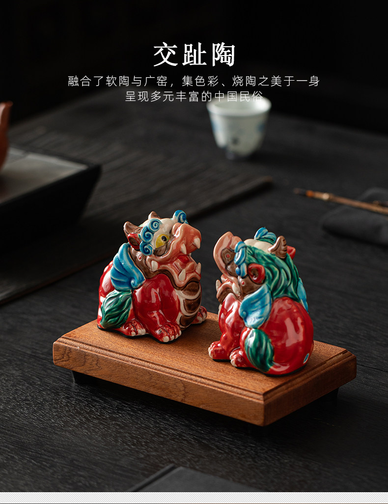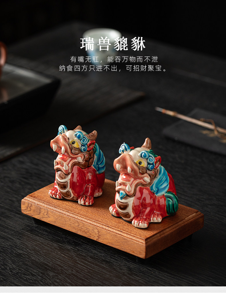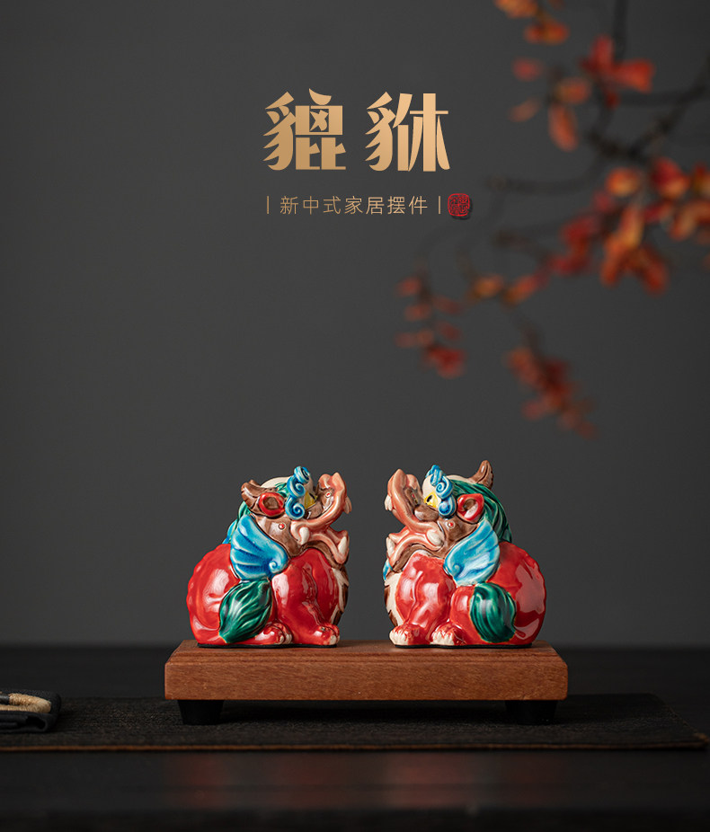 国潮陶瓷招财天禄貔貅公母客厅摆件交趾陶办公桌店铺开业装饰礼品