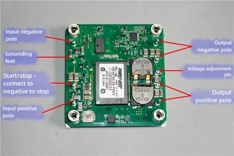Brand new high-quality imported isolated power module in stock, half brick standard module, input 36-75V, output 12V25A, power 300W, industrial isolated power module, with good workmanship and materials, labeled and defined according to the introduction diagram, default output 12V, with fine adjustment voltage pin, external resistance maximum measured can be fine adjusted between 6V-14V, exceeding the range will protect the cut-off output. The back of the module is made of aluminum plate, and high-power use requires cooperation with the radiator.