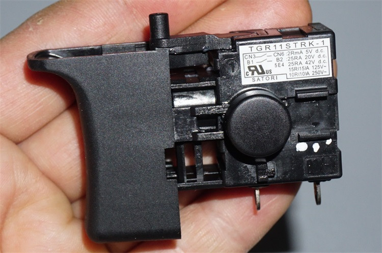 TGR11STRK-1,大电流触点电压标称20V/42V/125V/250V范围,电流25A-10A,估计很多高低压工具机型都有采用,原先是日本品牌电动工具上面的,开关重27克左右。