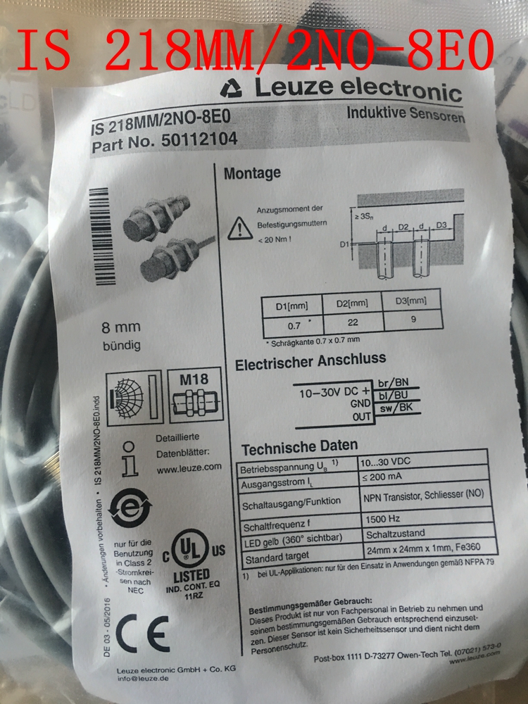 LEUZE IS 212MM/2NO-4N0 IS 212MM/4NO-4N0 IS 212MM/4NO-8N0 IS122PP/2N0-5E0 IS 208MM/4N0-4N0