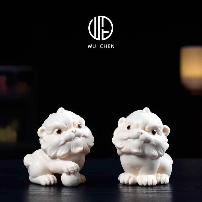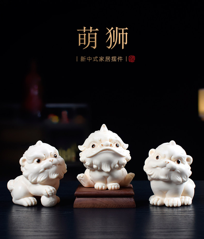 陶瓷小狮子吉祥物客厅家居茶室桌面摆件可爱醒狮