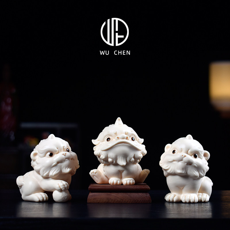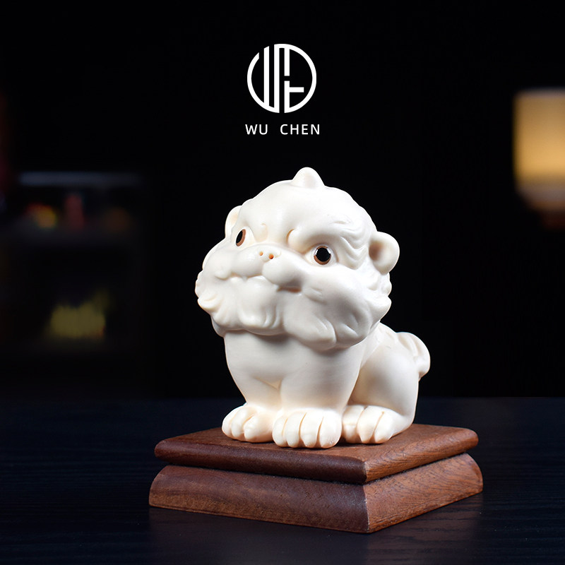 陶瓷小狮子吉祥物客厅家居茶室桌面摆件可爱醒狮店铺公司装饰礼品