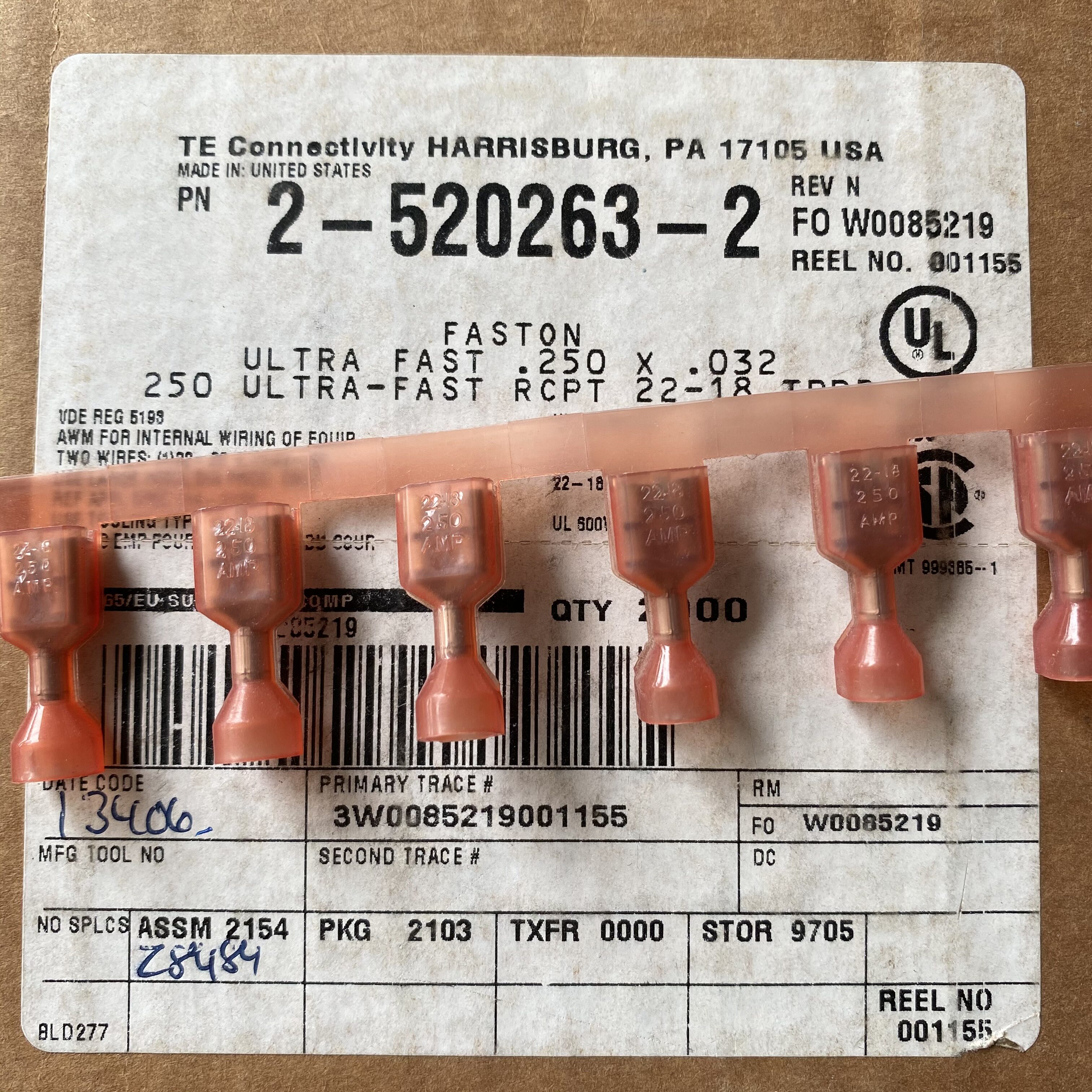 TE American AMP 2-520263-2 Male Female Plug Terminal 6.3mm Spring Insert Terminal with Cover 22-18